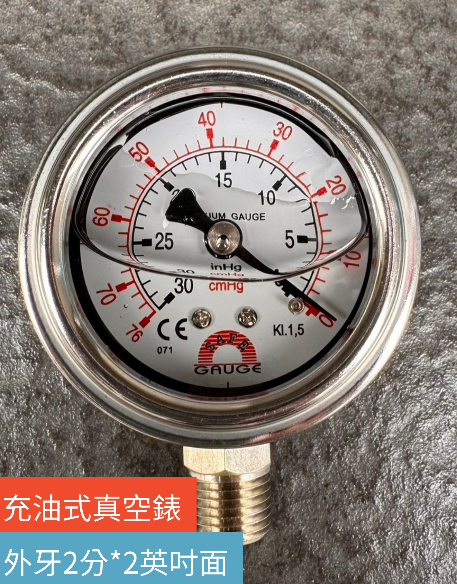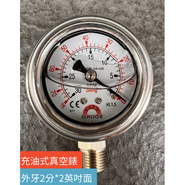 允統財精選台灣製不鏽鋼充油式真空錶/真空表(外牙2分*2英吋面)/真空幫浦/真空機可用