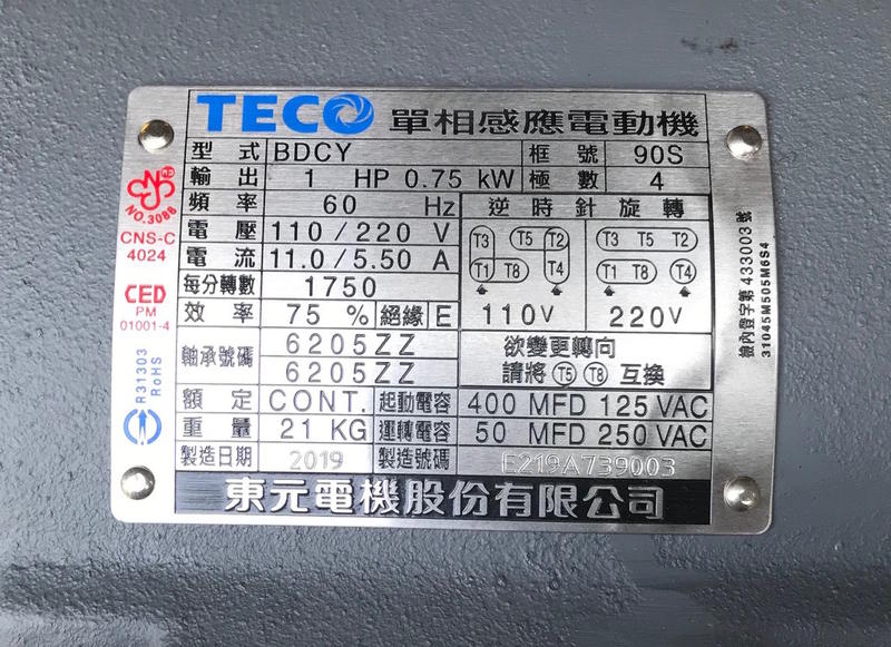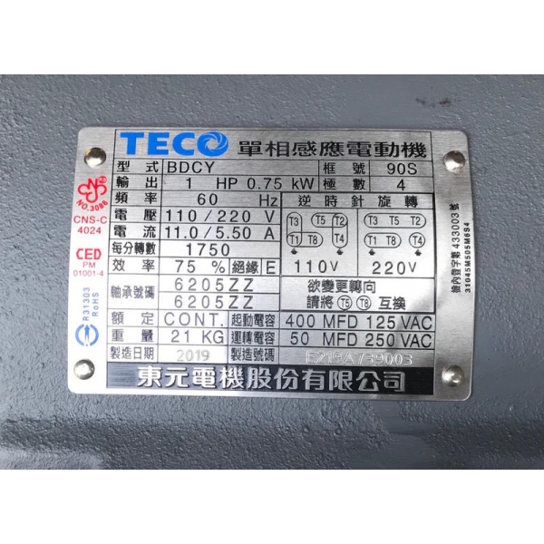 全新東元單相馬達1HP*4P(電壓:單相110V/220V)單相馬達 馬力:10HP 框號:90S 電壓:單相110V/220V 頻率:50HZ/60HZ共用 極數:4極(1750rpm) 馬達軸心:24mm*8mm 底座尺寸(孔中心距離):100mm*140mm ⚠️花東與離島運費另計,請勿直接下單。