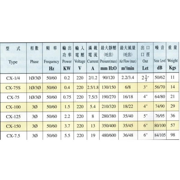 CX型與TB型全系列供應